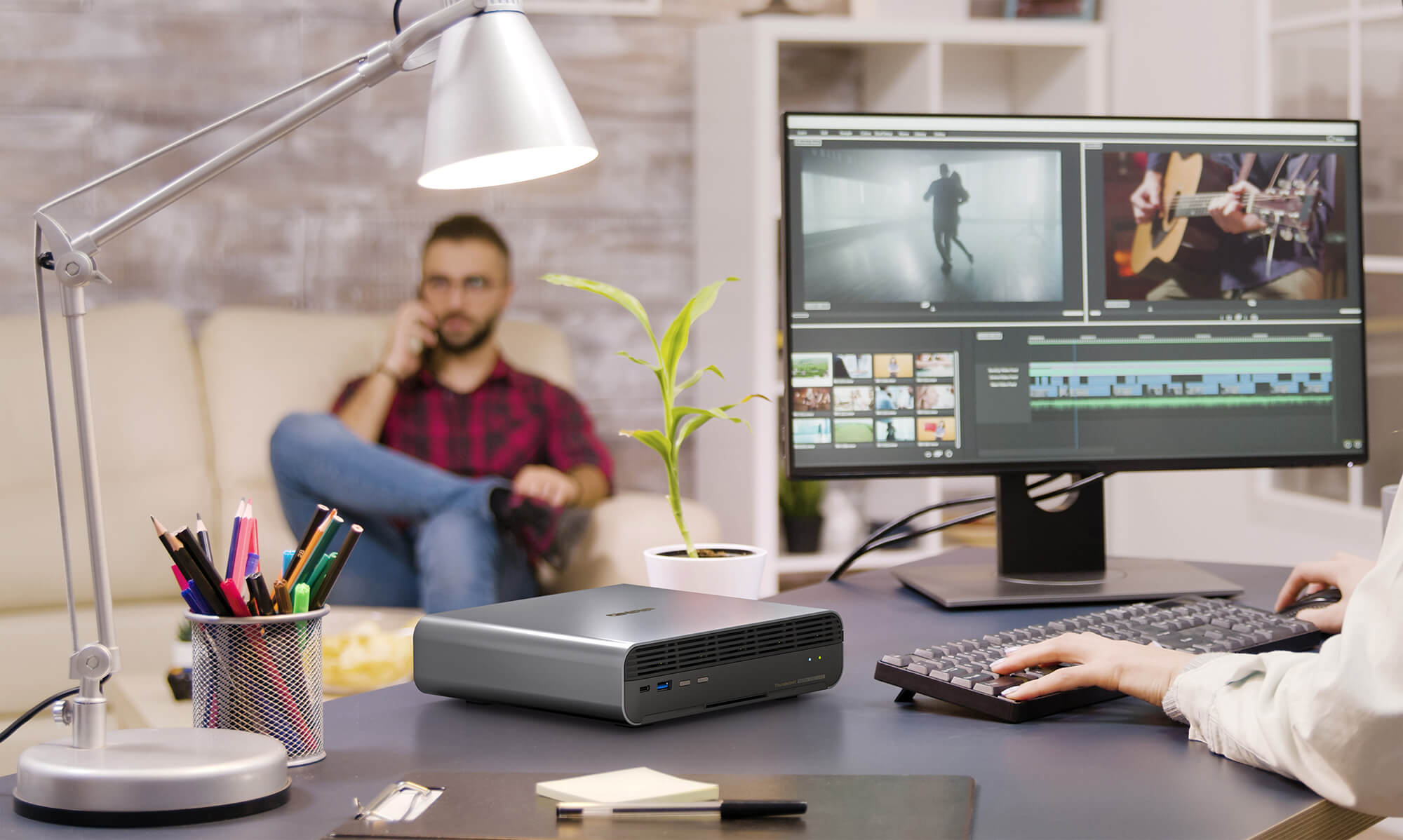 Dva vhoda Thunderbolt 4 omogočata neposredno povezavo z delovnimi postajami Mac in Windows. Datoteke 4K je mogoče prenesti v manj kot 10 minutah, kar zagotavlja spletno urejanje brez izpadov. Vgrajena vhoda 10 GbE in 2,5 GbE s podporo za SMB omogočajo več osebam hkraten dostop do datotek in njihovo sinhronizacijo, kar povečuje učinkovitost ekipe. - Poenostavljen uvoz medijev in spremljanje v živo