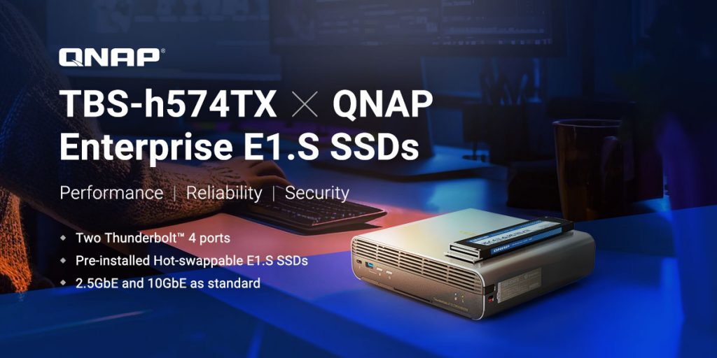 QNAP je nedavno predstavil nove modele dobro znanega TBS‑h574TX all-flash NASbook-a, ki so opremljeni s prednameščenimi SSD-ji poslovnega razreda E1.S. Ti modeli, ki so na voljo v zmogljivosti 9,6 TB ali 19,2 TB, so namensko zasnovani za podatkovno intenzivna opravila postprodukcije, kot so montaža videa, vizualni učinki (VFX) in animacija. Z podporo za hot swappable E1.S SSD‑je, TBS ‑h574TX omogoča nemoteno delovanje od prvega do zadnjega koraka, tako da lahko terenske ekipe, majhne ekipe za video produkcijo, uporabniki SOHO in strokovnjaki za mobilne medije nemoteno sodelujejo in so maksimalno produktivni.