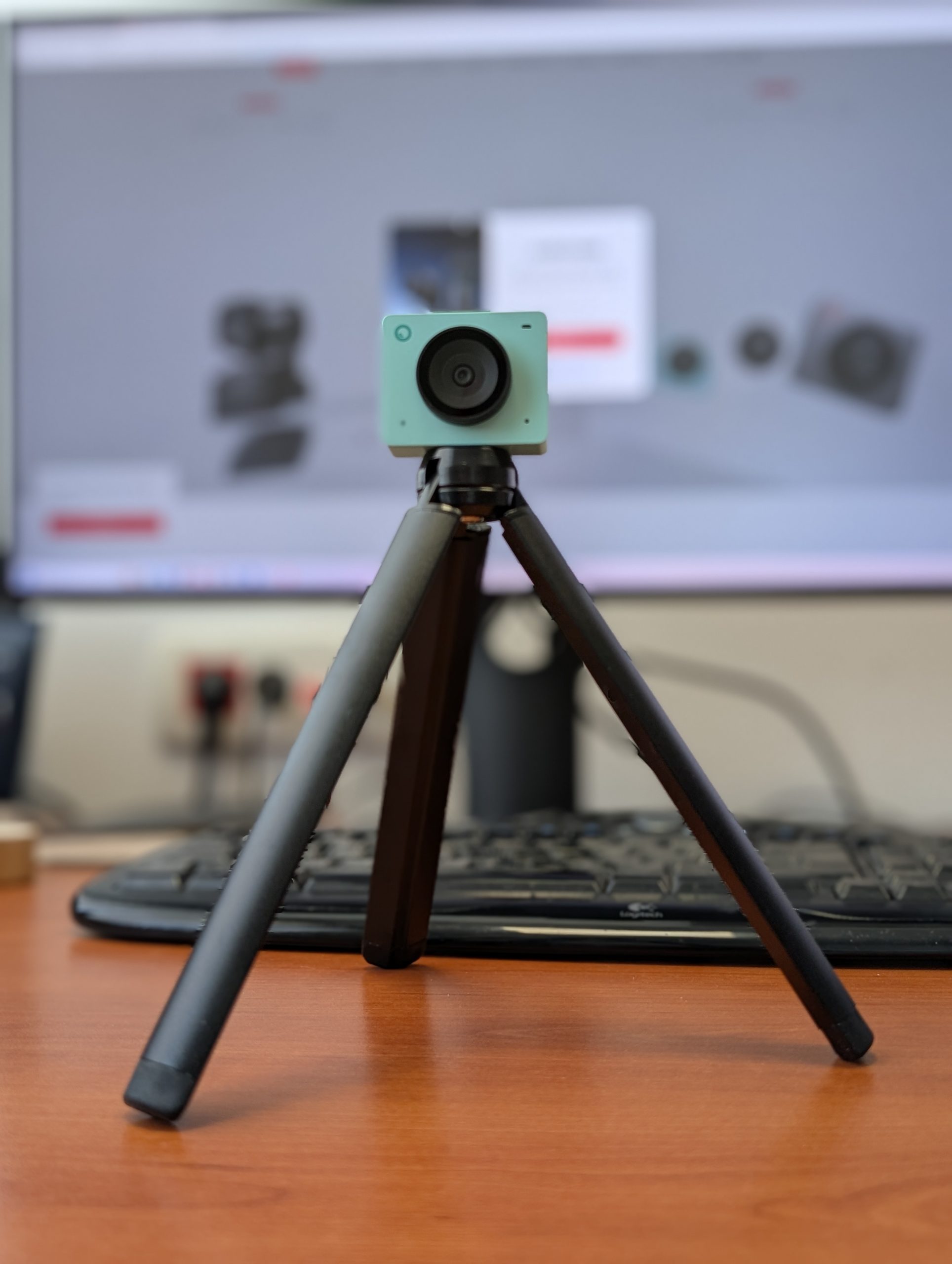 Embalažo spletne kamere Meet SE sem odprl, kamero postavil na vrh zaslona, in ko je sodelavec prišel v pisarno, je rekel le: »Kaj pa imaš to?« Kamera s svojo obliko in turkizno barvo v prostoru kljub svoji majhnosti takoj pritegne pozornost. Gre za kompaktno in minimalistično zasnovano kamero, ki se lepo poda na vsak monitor ali prenosnik. Je majhna in enostavna in jo lahko brez težav vzamemo s seboj na pot – recimo, da jo pospravimo v torbo poleg prenosnika.