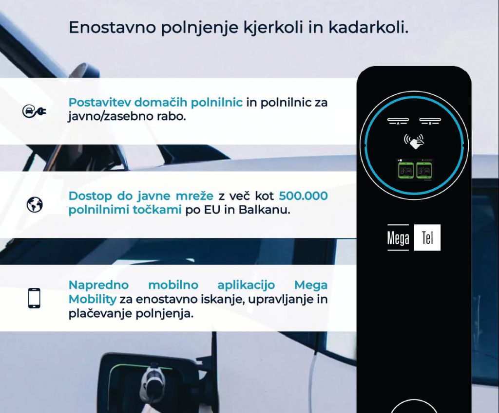 V Sloveniji je MegaTel trenutno največji ponudnik javnih polnilnic in s tem odgovarja na vse večje potrebe uporabnikov električnih vozil. S preko 2000 polnilnimi točkami po državi zagotavlja široko dostopnost polnjenja tako v urbanih središčih kot tudi ob glavnih prometnih povezavah. Prav dobra »pokritost« uporabnikom omogoča večjo mobilnost in občutek varnosti pri vsakodnevni uporabi vozila. Eden glavnih izzivov električne mobilnosti je namreč še vedno skrb glede dosega in dostopnosti infrastrukture, MegaTel pa s svojo prisotnostjo to oviro aktivno zmanjšuje.