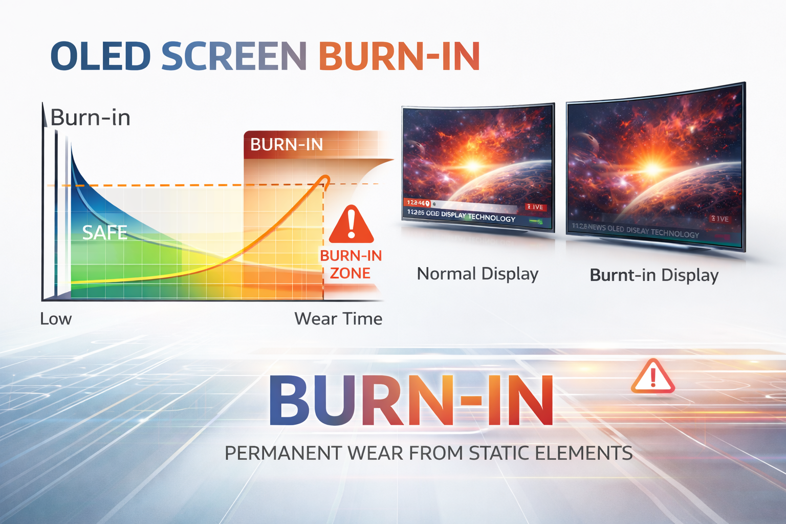 Druga pomembna tema je burn-in oziroma trajnejša obraba panela pri dolgotrajno statičnih elementih. Današnji OLED monitorji imajo precej več zaščitnih mehanizmov kot prve generacije: premikanje pikslov, osveževanje panela, zaznavanje statičnih elementov in druge oblike samoohranitve. Kljub temu pa OLED še vedno zahteva nekaj več discipline kot klasičen LCD, če je namenjen vsakodnevnemu delu z enakimi meniji, orodnimi vrsticami in stalno istimi okni.