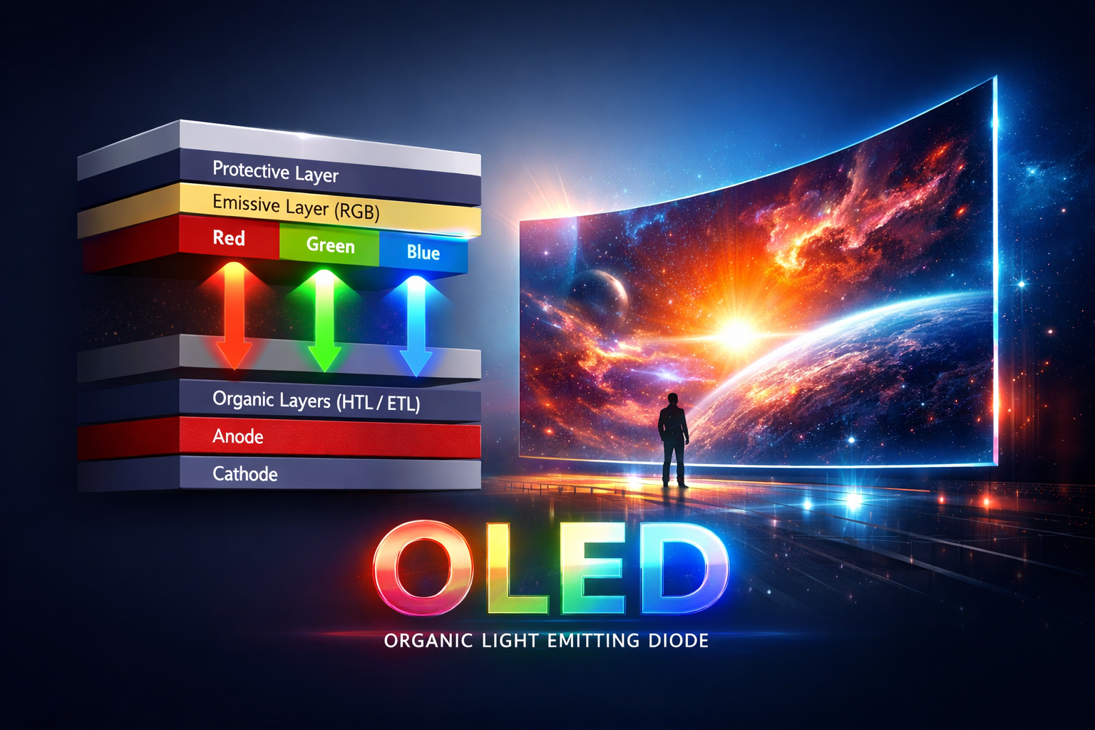 Pri klasičnem LCD-ju zaslon vedno izhaja iz osvetlitve ozadja. Tudi kadar je slika temna, je svetloba v ozadju še vedno prisotna, zaslon pa jo skuša čim bolj učinkovito blokirati. Pri OLED-u je logika obrnjena: posamezni piksli svetijo sami zase. Ko mora biti del prizora črn, se ta del preprosto ugasne. Prav zato ima OLED tako prepričljivo črnino, praktično neskončen kontrast in vtis globine, ki ga LCD doseže bistveno težje.