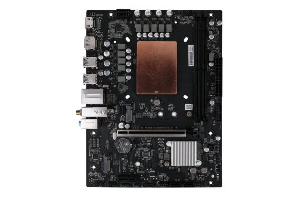 Matična plošča meri standardnih 24,38 cm krat 24,38 cm, kar pomeni, da se prilega v večino običajnih ohišij Micro-ATX. Kljub mobilnim koreninam procesorja plošča ponuja vse funkcije namiznega sistema. Opremljena je z dvema režama za sistemski pomnilnik DDR5, ki podpirata visoke hitrosti, in polno režo PCIe 5.0 x16 za najnovejše grafične kartice. Za shranjevanje podatkov sta na voljo dve reži M.2 PCIe 4.0, ki sta hlajeni z aluminijastimi hladilniki. Posebnost plošče je tudi prilagojen hladilni sistem za procesor; namesto namiznih podnožij uporablja rešitev, ki omogoča namestitev standardnih hladilnikov za procesorje podjetja Intel, kar zagotavlja tiho in učinkovito delovanje.