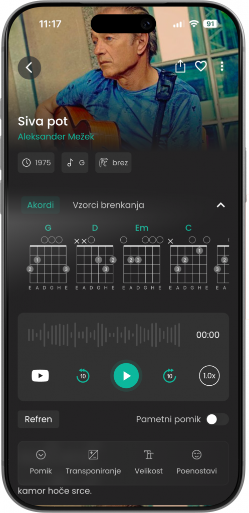 Prehod na mobilno aplikacijo je bil zato logičen korak. Ta prinaša vmesnik, prilagojen igranju, hitrejšo navigacijo in bolj pregleden prikaz besedil ter akordov. Dostop do pesmi je neposreden, uporaba pa bistveno bolj tekoča in prilagojena dejanskim situacijam.
