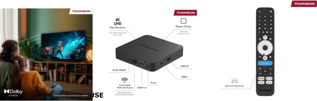THOMSON predstavlja Streaming Box 245, ki združuje zmogljivo delovanje v ločljivosti 4K Ultra HD in celovito izkušnjo Google TV™ v eni vsestranski napravi. Ta kompaktna naprava je več kot le predvajalnik za pretakanje – vsak televizor spremeni v popoln pametni televizor in multimedijsko središče.