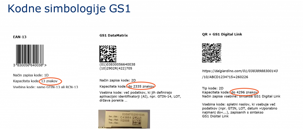 V tem kontekstu je pomembna globalna pobuda GS1, imenovana »Sunrise 2027«, ki spodbuja prehod z enodimenzionalnih (1D) na dvodimenzionalne (2D) kode, kot so QR in DataMatrix. Ta prehod omogoča bistveno večjo količino podatkov na manjši površini ter boljšo prilagodljivost prihodnjim zahtevam trga.