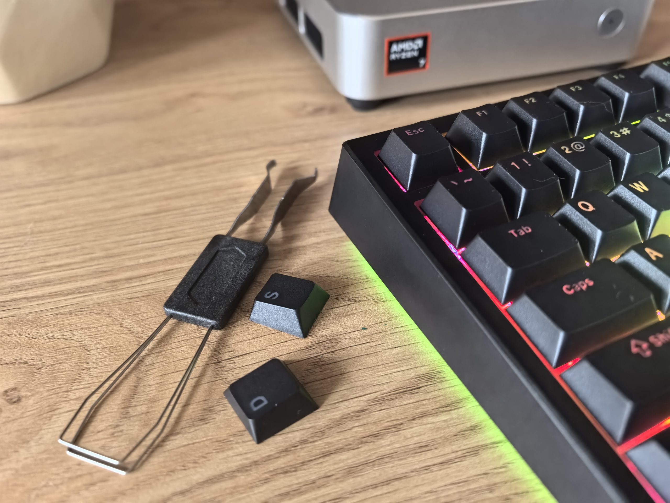 Seveda nobena tipkovnica ni popolna. Pri G84 sem moral nekaj dni privajanja posvetiti njeni posebni razporeditvi. Ker gre za kompaktno 84-tipkovno postavitev, ne dobi vsaka funkcija svoje fizične tipke, na primer tipko Delete je privzeto treba sprožiti prek kombinacije Fn (ali pa jo preslikati drugam). Priznam, da sem sprva večkrat refleksno iskal tipko Delete v zgornjem desnem kotu, kjer pa je na G84 druga funkcija. Na srečo je zaradi podpore VIA ta »problem« enostavno rešljív: hitro sem si premapiral bližnjo tipko, da zdaj neposredno deluje kot Delete.