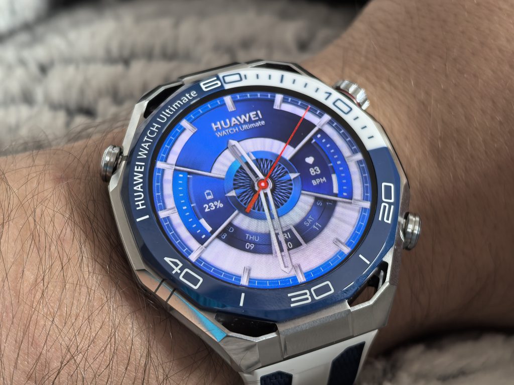 Prvo uro Ultimate so predstavili pred dvema letoma in oblika se je korenito spremenila. Namesto kroga so prešli na ostre kote in kar je še bolj pomembno, za temelj so vzeli njihovo arhitekturo iz serije Watch namesto iz serije GT, kar pomeni, da imamo poleg treh klasičnih gumbov, zdaj tudi »gumb« oziroma senzor X-Tap za EKG in izvedbo serijo zdravstvenih meritev (traja 60 sekund), in podporo za eSIM.