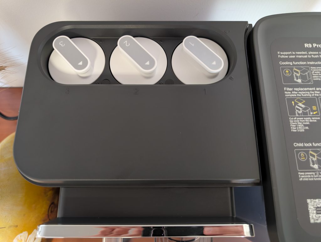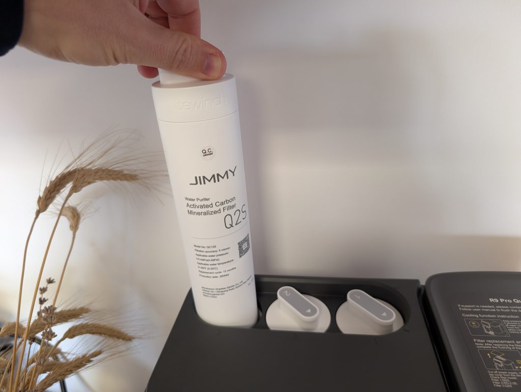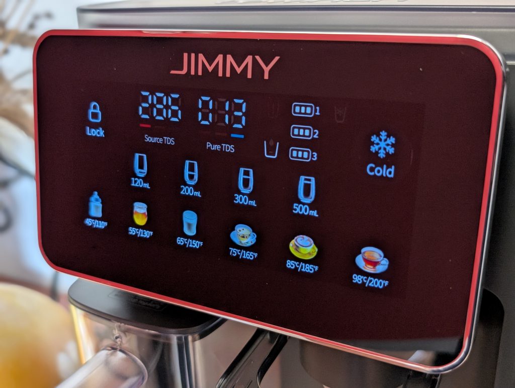 Upravljanje naprave JIMMY R9 Pro poteka preko zaslona na dotik, ki je pregleden in omogoča enostavno izbiro temperature in količine vode. Zaslon prikazuje tudi stanje filtrov in omogoča hitro menjavo z rotacijskim mehanizmom, ki ne zahteva posebnega orodja.