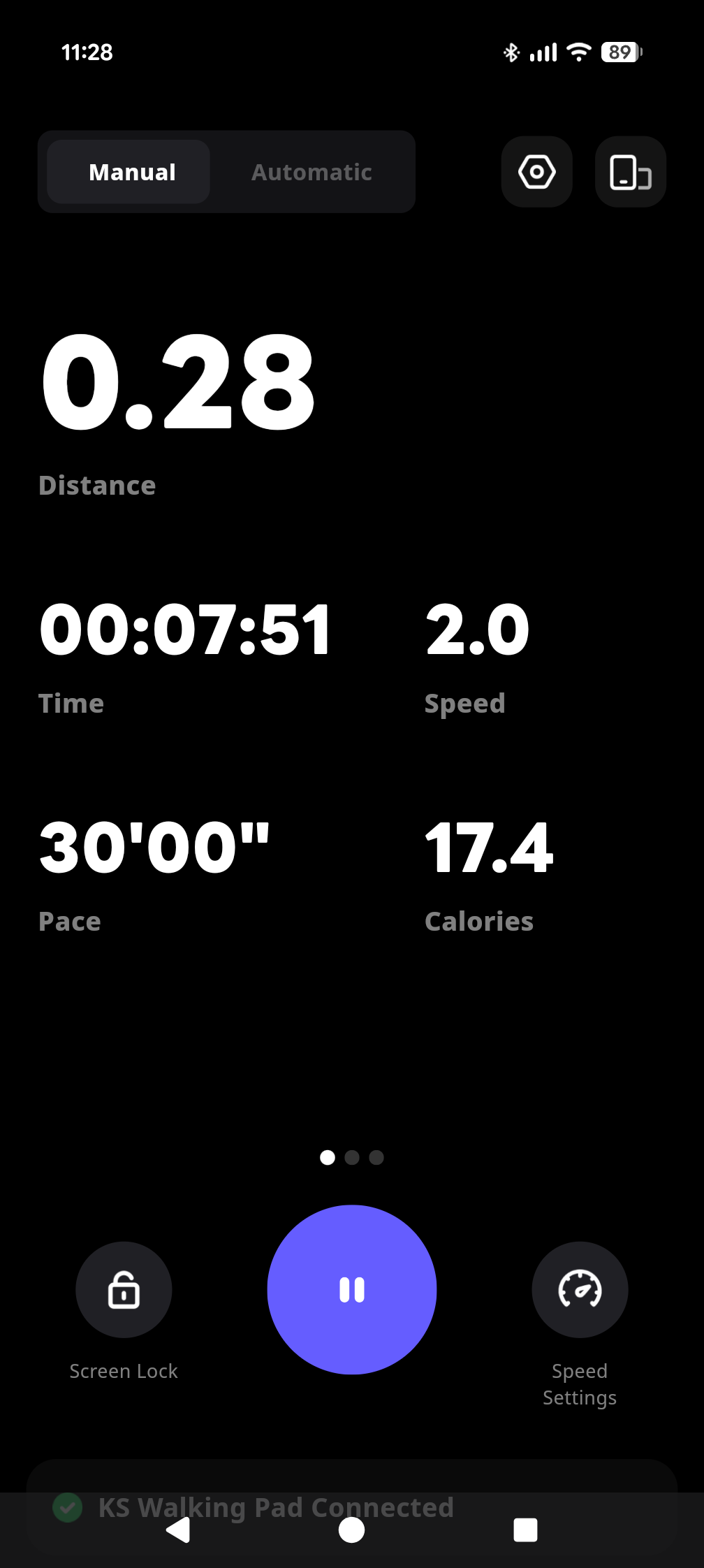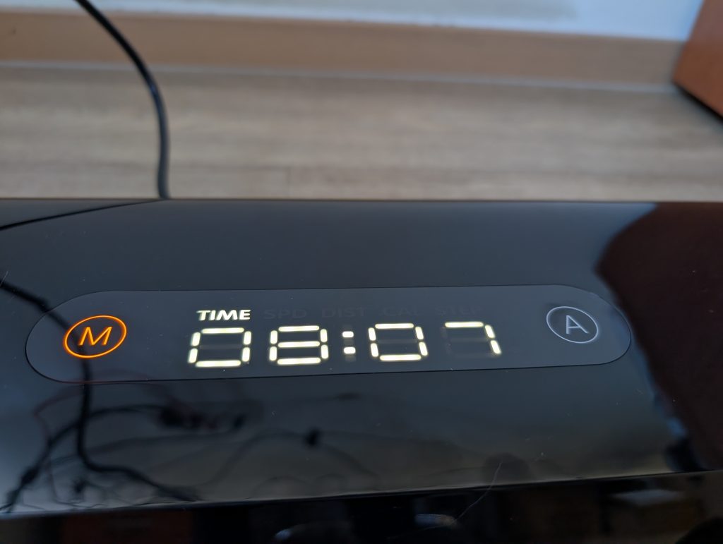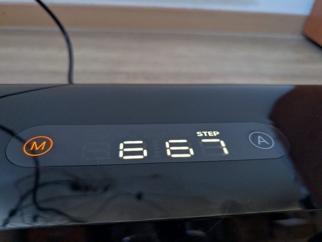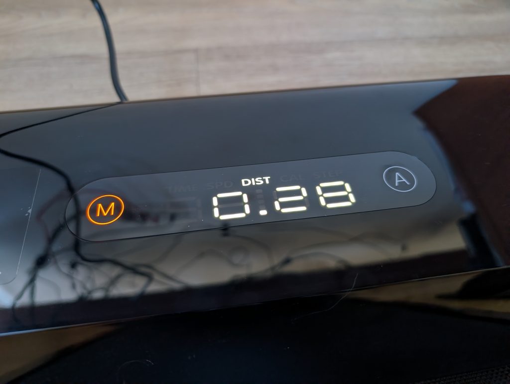 Na zgornjem delu je vgrajen LED zaslon, ki prikazuje osnovne podatke, kot so čas, razdalja, hitrost, porabljene kalorije in število korakov. Zaslon je minimalističen, a dovolj pregleden, da omogoča hiter vpogled v ključne informacije, ne da bi me to pri hoji motilo. Povezava z aplikacijo omogoča dodatno spremljanje vadbe.