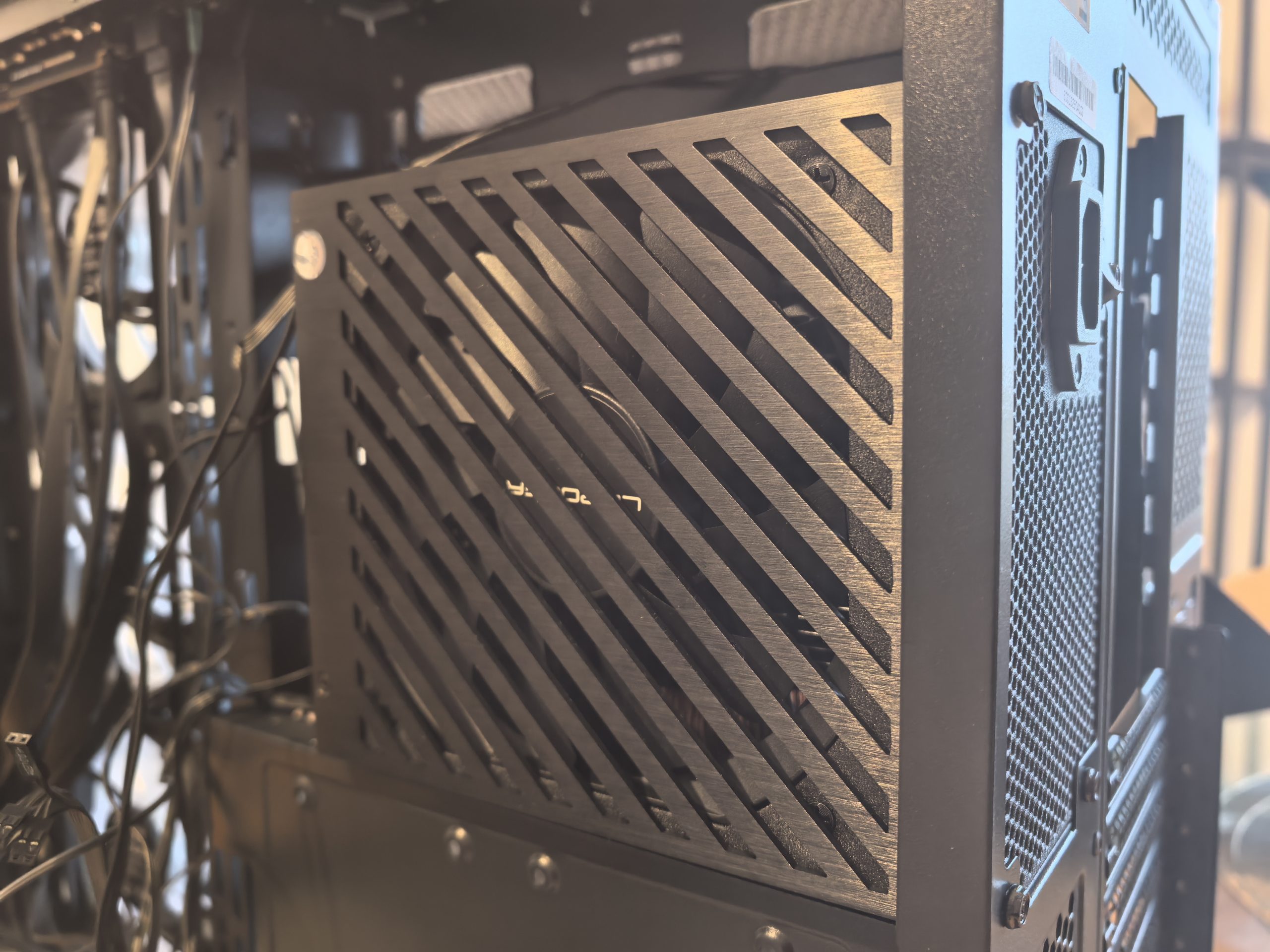 Za daljši test sem zagnal kombinacijo 3DMark + Prime95. Ob največji porabi sistema (merjeno z merilnikom porabe na vtičnici) se je napajalnik ogrel, a ostal tišji, kot sem pričakoval. Ventilator se je začel vrteti šele po nekaj minutah, nato pa deloval z enakomernim šumom, brez sunkovitega vklapljanja, brez hrupa višjih frekvenc. Glasnosti v sobi ni motil, tudi v odprtem ohišju.