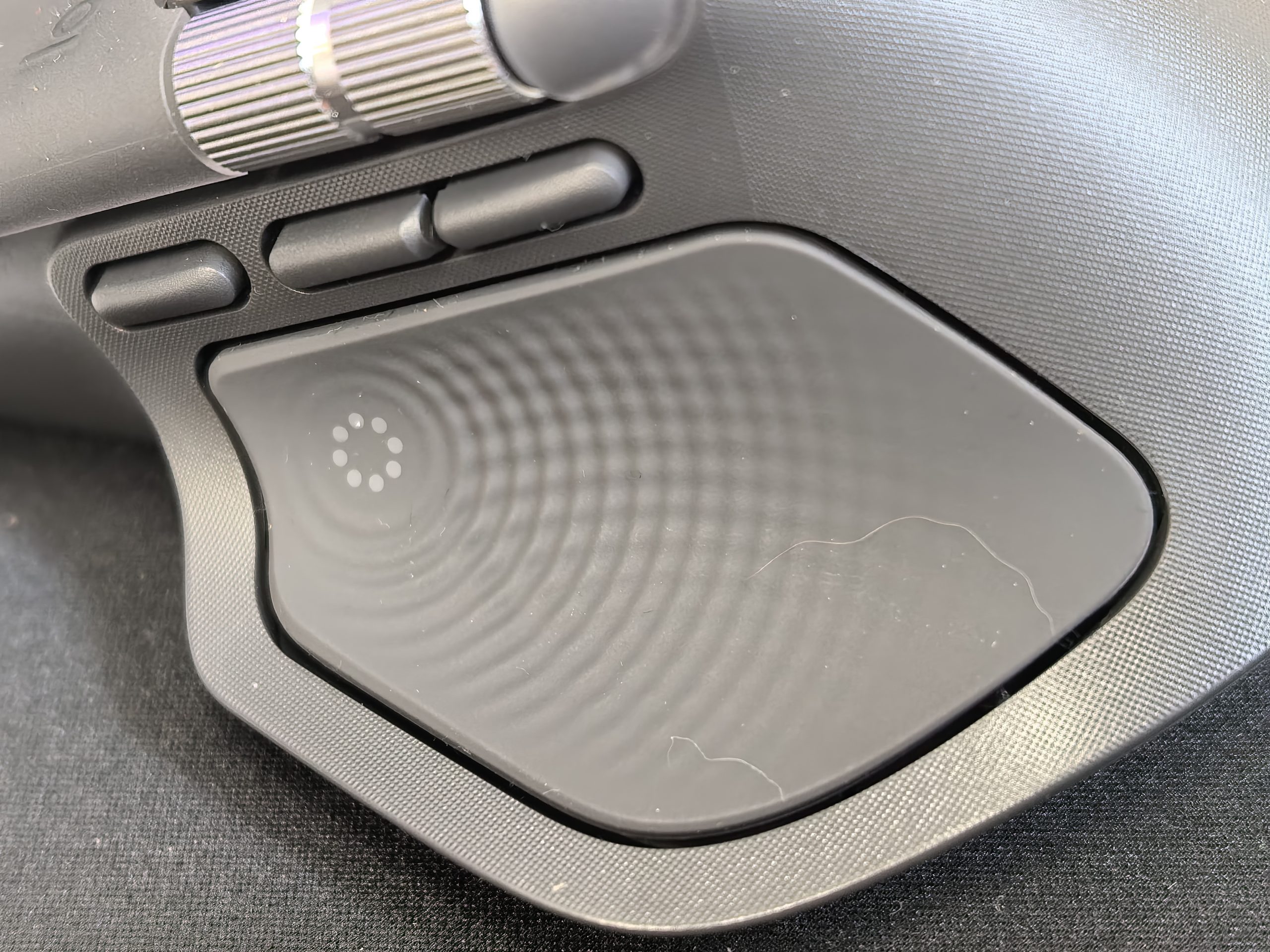 Največja novost vmesnika pa je nova akcijska tipka (Action Button), ki je diskretno vgrajena v naslon za palec. Prepoznal jo boš po majhnem, okroglem vzorcu tik pod palcem. Ta tipka ne deluje kot običajen gumb, temveč sproži poseben krog bližnjic na zaslonu, imenovan Actions Ring. Actions Ring je v bistvu tipka, ki vam pohitri delo. Ne rabiš iskati bližnjic na tipkovnici ali v menijih, ampak si na primer na to tipko nastaviš bližnjico, na primer oblikovalci si lahko v ta obroč postavijo različna orodja za uporabo v Photoshopu ali DaVinciju. Za zdaj še ni veliko podprtih programov, Logitech naj bi sproti posodabljal ta seznam.