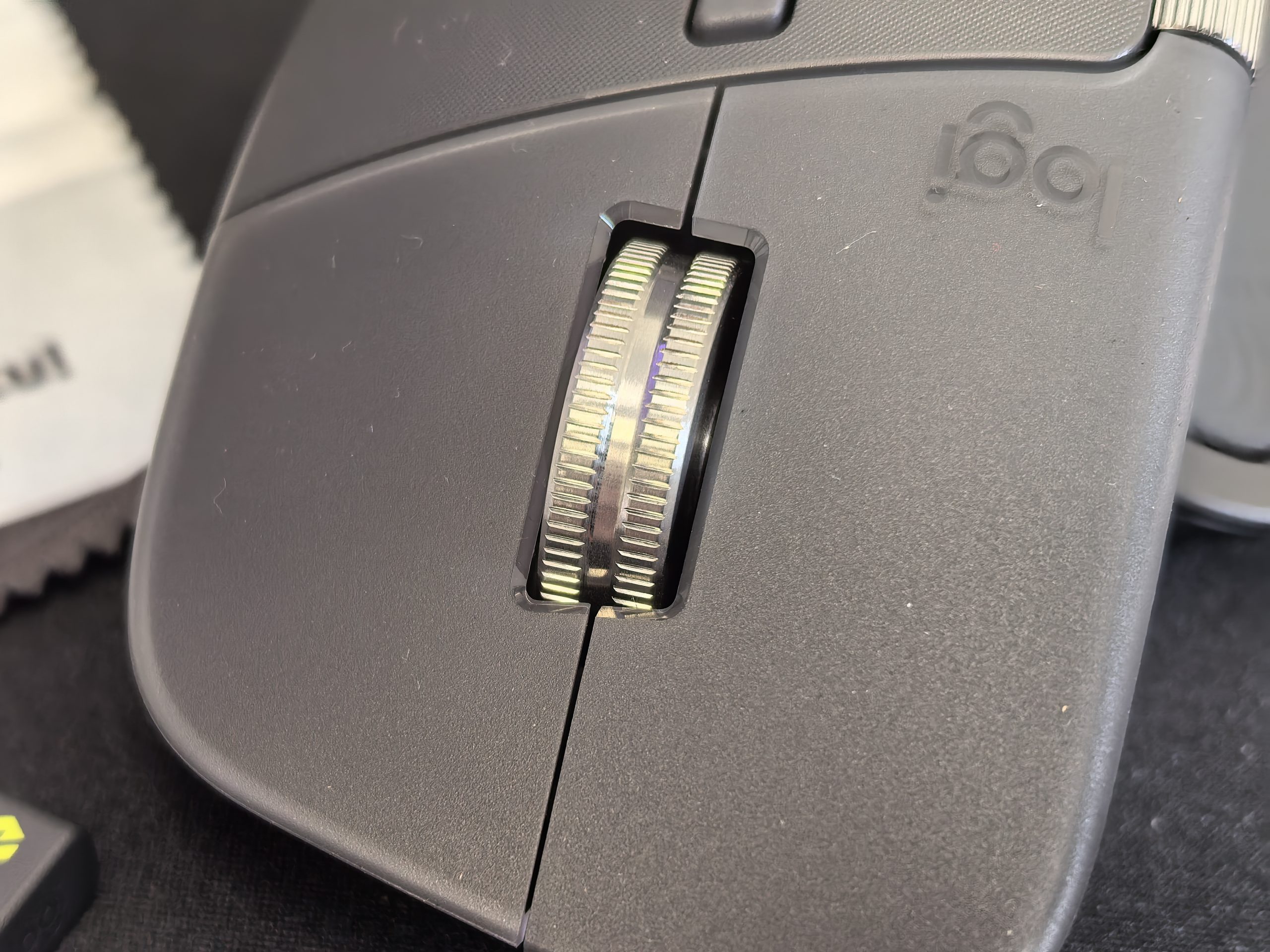 V kreativnih programih stranski kolešček tekoče premika časovnice ali spreminja velikost čopiča, radialni meni na akcijskem gumbu pa nadomesti iskanje ikon z neposredno izbiro orodij ob kazalcu; subtilna haptična povratna informacija “na otip” potrdi izbiro ali poravnavo. Tudi pri programiranju se pozna. Hitre navigacije (skok na definicijo/nazaj) lahko vežeš na stranske gumbe, občutljivost prilagodiš za boljšo natančnost, s Flow pa z eno miško prehajaš med dvema ali tremi računalniki in prenašaš vsebino med njimi.