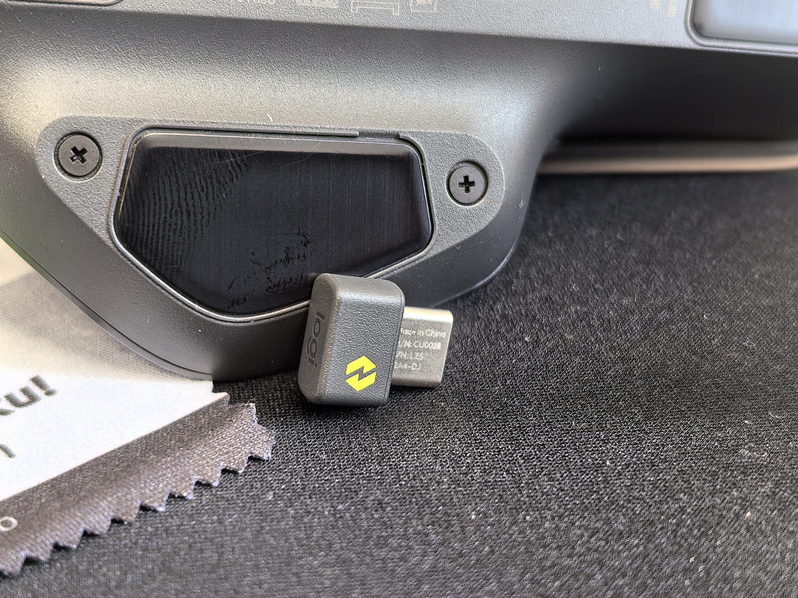 Kar mene osebno zmoti, je, da so se odločili za USB-C adapter namesto USB-A. Bolj zaradi tega, ker je število USB-C priključkov običajno omejeno, v povprečju 1 ali dva, mogoče celo nimate nobenega, če imate starejši namizni/prenosni računalnik. Sicer lahko dokupite dodaten USB-A adapter, ampak to se mi ne zdi optimalna rešitev. Domet signala je približno 10 metrov, kar je dovolj za pisarno ali za morebitno domačo uporabo, na primer če ste na kavču, računalnik pa priklopljen na televizor.