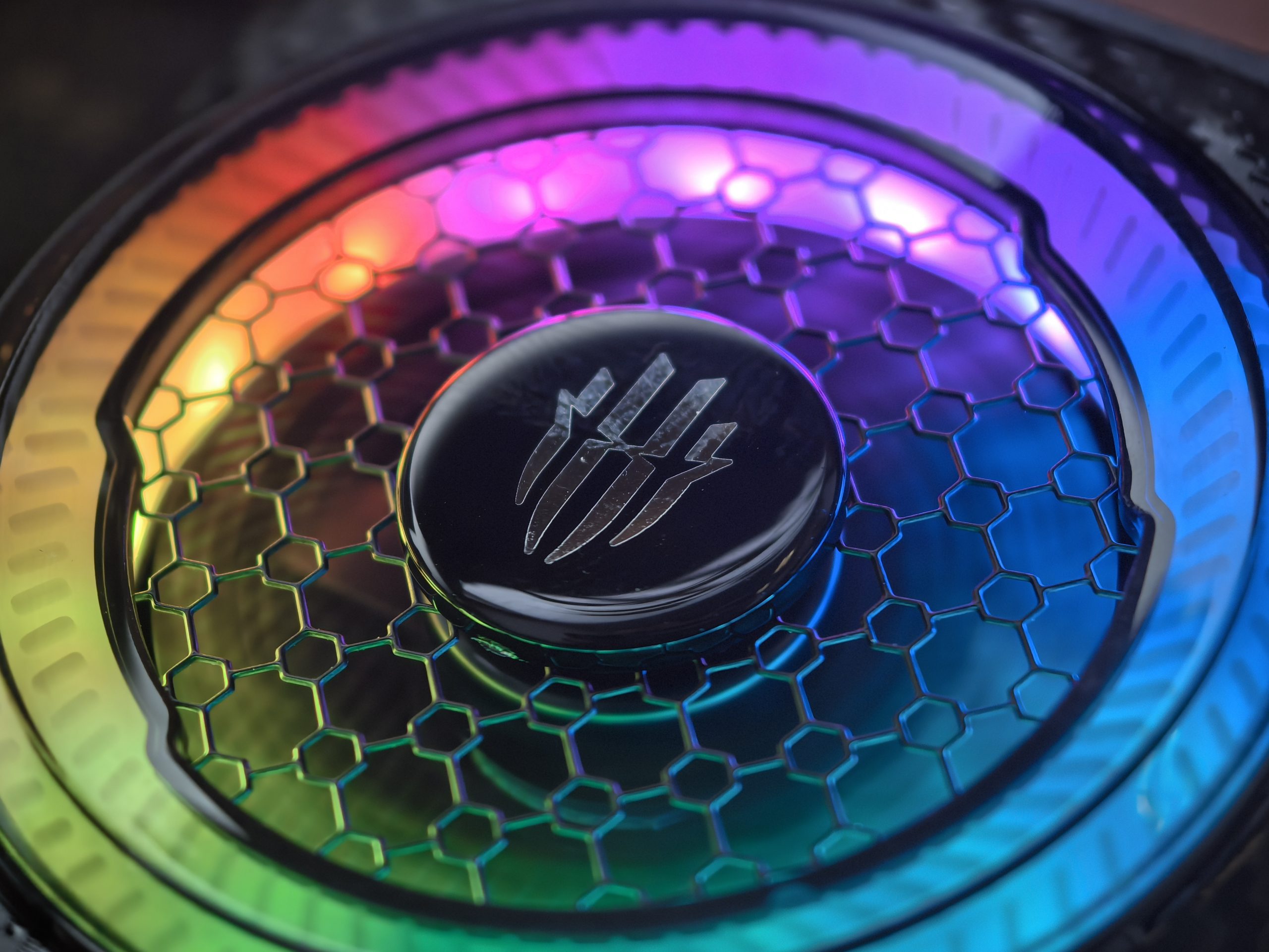 Kot da ventilator sam po sebi ni dovolj poseben, so mu dodali še poseben zvočni učinek – zagon motorja nekega športnega avtomobila. To je eden od tistih elementov, ki bo marsikomu kičast, ampak mene še vedno vsakič nasmeje. Lahko ga zamenjaš in tudi dodaš kakšnega svojega. Prilagajaš lahko tudi svetlobne učinke ali pa jih izklopiš.