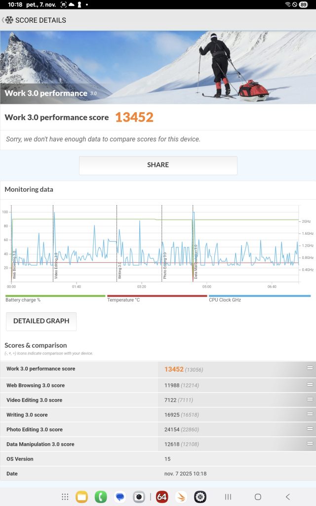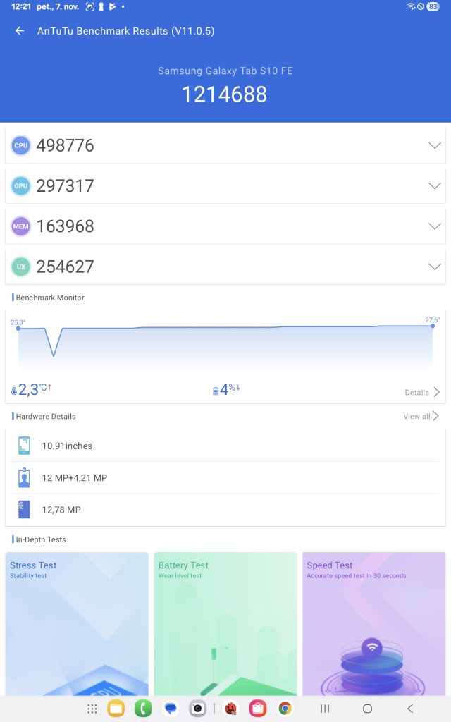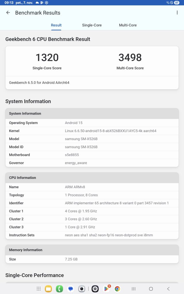 To je njena največja težava. Ni slaba tablica, nič na njej pa posebej ne izstopa. Mogoče dolgoživost baterije, ampak tudi to najdeš pri rivalih v tem rangu. Pohvalim lahko zaslon, izdelavo in, kot vsakič, programsko opremo One UI. Zmogljivost se je izgubila v povprečju in je še en dokaz, da Exynos še ni dorasel konkurenci. Glede na to, da je bila uradna cena ob izidu sedem stotakov, bi vsaj jaz pričakoval veliko boljšo kombinacijo čipa, RAM-a in pogona.