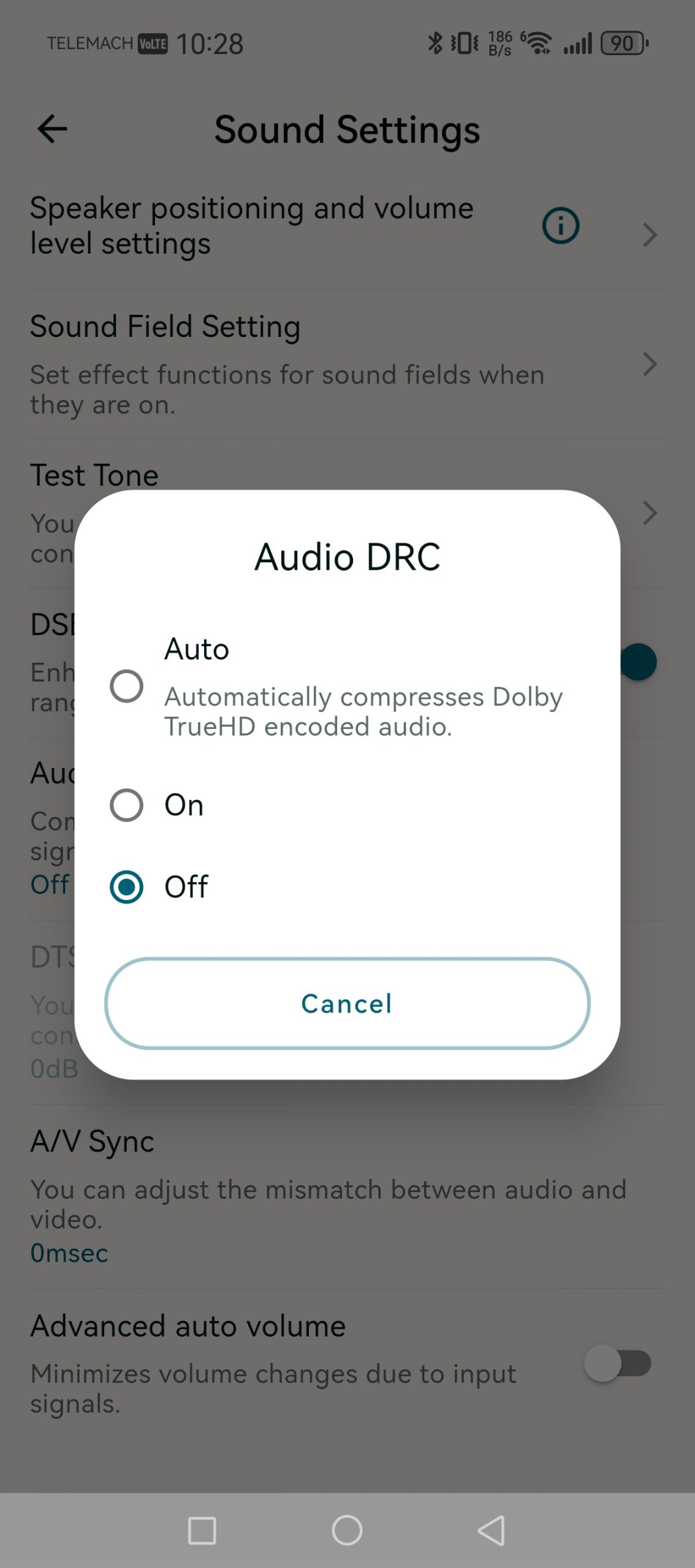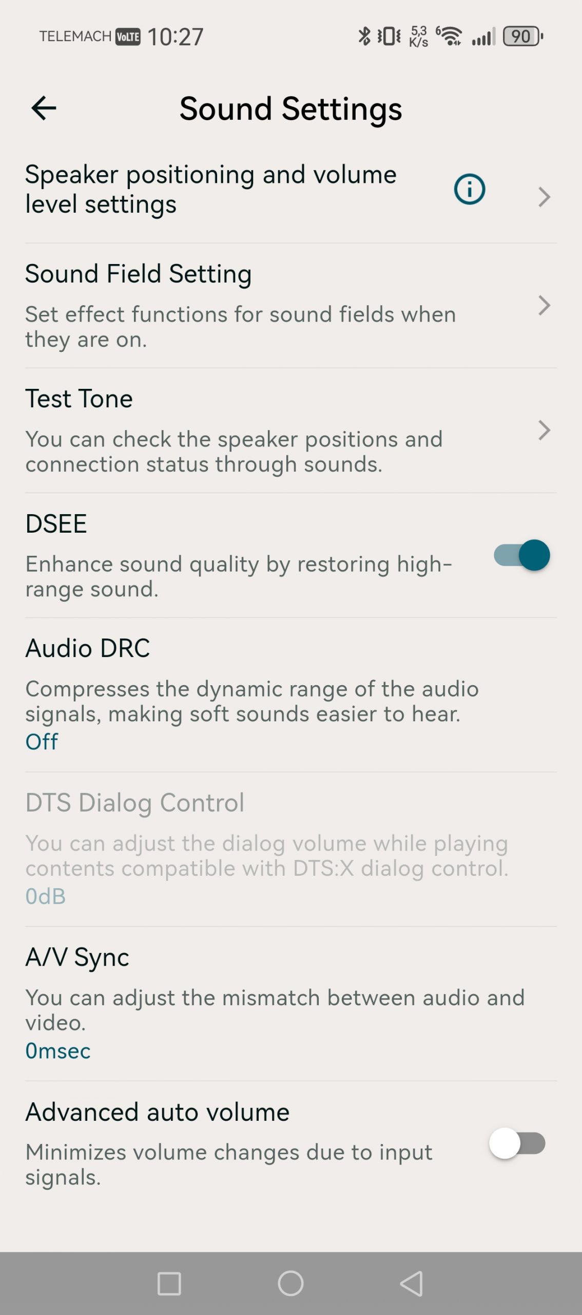 Priložen je manjši daljinski upravljalnik z gumbi za Sound Field (prostorski zvok), poseben profil Voice/Night, upravljanje intenzivnosti basa in glasnosti. Namesto priloženega lahko uporabite daljinec od televizorja (če boste uporabili HDMI eARC), vendar boste izgubili hiter dostop do omenjenih posebnih funkcij. Kar me zmoti, je, da ugibam, kolikšna je glasnost, intenziteta basa. Edina LED lučka je na nizkotoncu, vendar tudi z njeno pomočjo ne moreš vedeti, ali si na glasnosti 12 ali 30, ali je bas na 3 ali -10. To lahko vidiš v aplikaciji, ampak to mi je res odveč. Aplikacija bi morala biti samo za globlje nastavitve, ne pa za osnovno prilagajanje.
