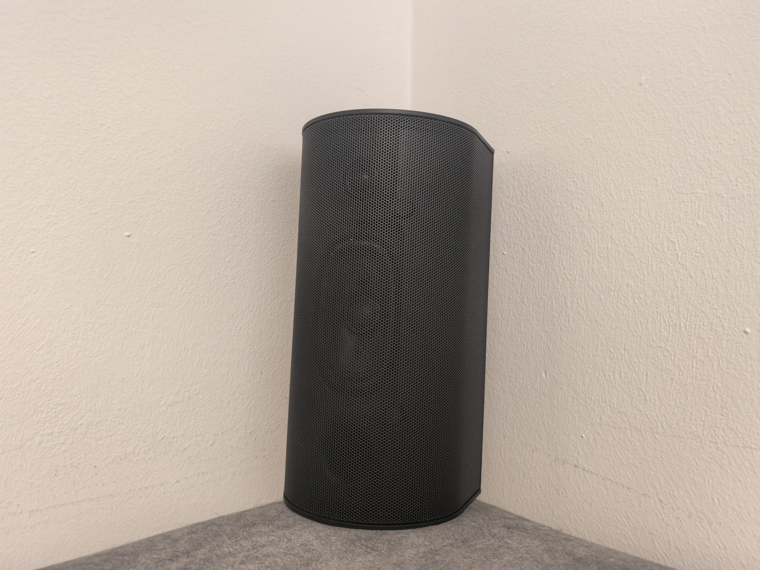 Zadnja dva zvočnika se s sprednjima enotama povezujeta brezžično s pomočjo ojačevalnika, ki je dovolj kompakten, da sem ga zlahka skril. Oba zvočnika se sicer z ojačevalnikom povezujeta s kablom, ampak slednje vsaj ne rabiš napeljevati do sprednjih zvočnikov. Vsi kabli so dovolj dolgi, da se lahko poigravaš s postavitvijo.