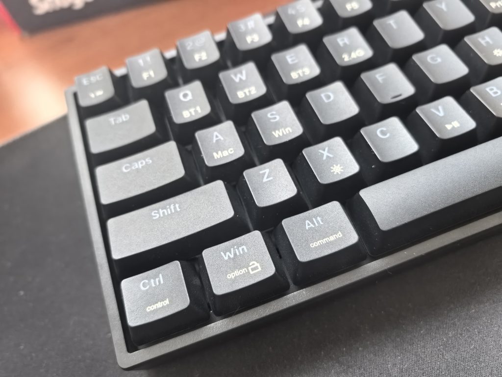 Ena največjih prednosti SHOGO 78W je povezovanje, saj lahko med tremi načini izberete sebi najljubšega. Tipkovnico lahko uporabljate prek USB-C kabla, 2,4-GHz brezžično z USB vmesnikom, ki ga najdete lepo skritega na spodnji strani ohišja, ali pa preko Bluetooth povezave. Preklapljanje med načini je hitro in enostavno, zahteva le premik gumba na spodnji strani tipkovnice.