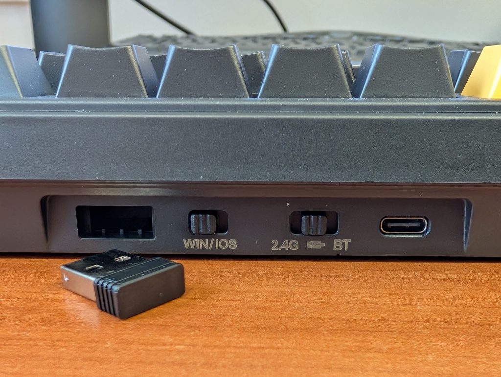 Excalibur ponuja trojni način povezave: USB 2.0, 2,4 GHz brezžično in Bluetooth. To pomeni, da jo lahko uporabljate na PC-ju, prenosniku, tablici ali celo telefonu. Združljivost je široka: Windows, Linux, macOS, iPadOS, Android in iOS. Baterija zdrži do 80 ur brez osvetlitve oziroma približno 14 ur z RGB osvetlitvijo. Polnjenje traja okoli 8 ur, kar ni malo, je pa res, da tipkovnico priklopimo na kabel, ko ji zmanjka baterije, in jo lahko tudi medtem uporabljamo. Lahko pa jo, ko zasveti opozorilna lučka, čez noč priklopimo na kabel in se baterija napolni. Tudi če ni napolnjena rekordno hitro, je polnjenje zelo nemoteče, saj to ni telefon, ki ga moramo imeti ves čas ob sebi.