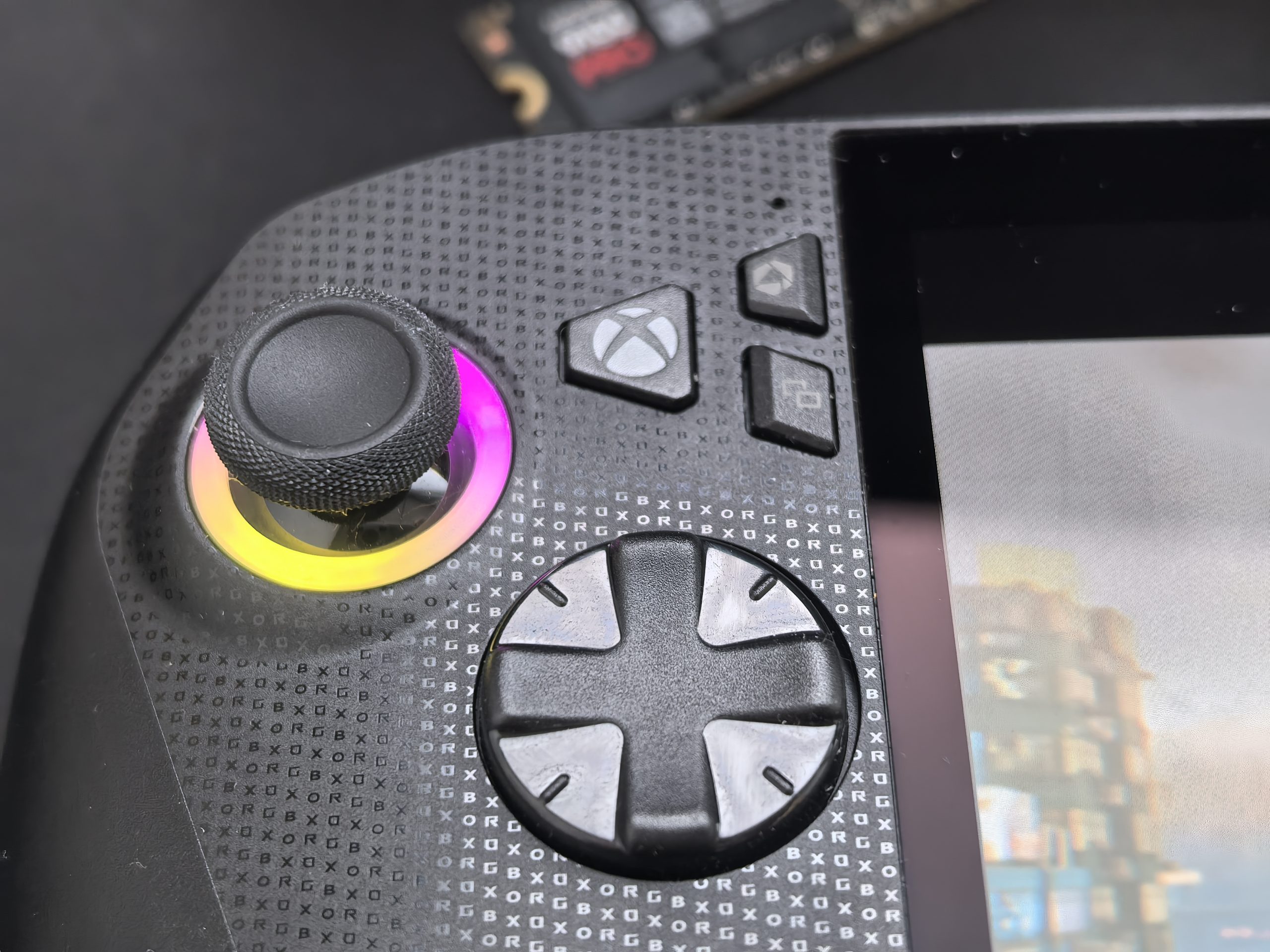 D-plošček (angl D-pad) je večinoma ostal enak. Gibanje med različnimi smermi je gladko, natančnost je v redu, še vedno tudi hitro privabi madeže prstnih odtisov. Analogni palici imata malenkost krajši profil, površina je gumirana, ki dobro preprečuje zdrse. Okoli vsake je RGB osvetljava, ki jo lahko po želji izklopiš ali spremeniš, kako se osvetljuje.