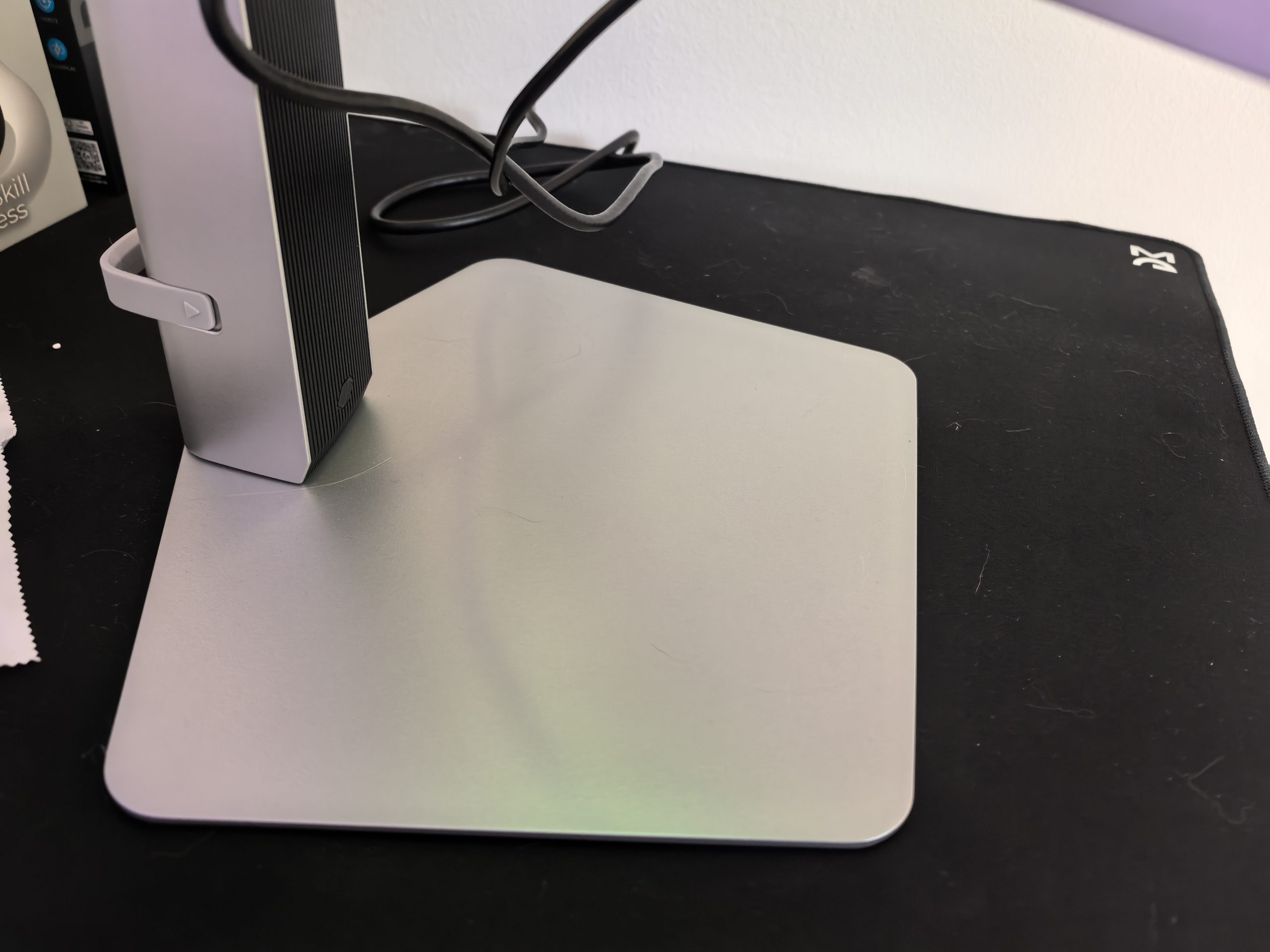 Stalak je iznenađujuće kompaktan za stabilnost koju pruža. Budući da nemam ogroman stol, sviđa mi se što na njega mogu staviti svoj kontroler. Podesivost monitora je savršena. Možete mu mijenjati visinu, možete ga rotirati sve do portretnog načina rada, a možete ga i naginjati. Za mene je visina najvažnija jer je prostor ispod monitora jako popularan kod mojih mačaka.